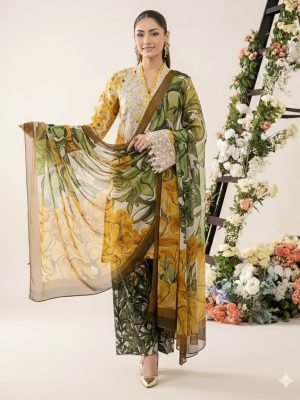 Luxury Embroidered Sequins 3-Piece Lawn Suit | Stunning Premium Chiffon Dupatta Design