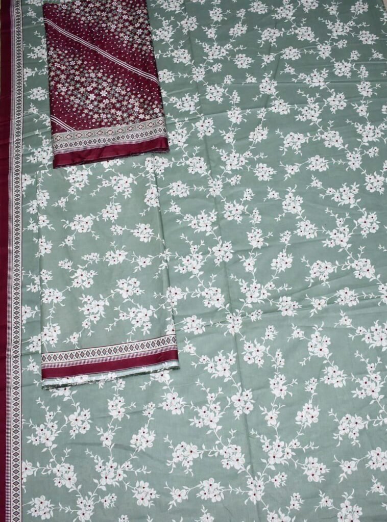 3Pc Unstitched Lawn Dress Pastel Green – Stunning Chiffon Dupatta with Sequins Embroidery