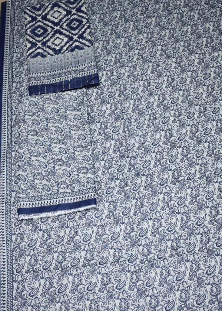 Bin Saeed Lawn 3-Piece Suit | Blue and White Paisley Print with Geometric Dupatta
