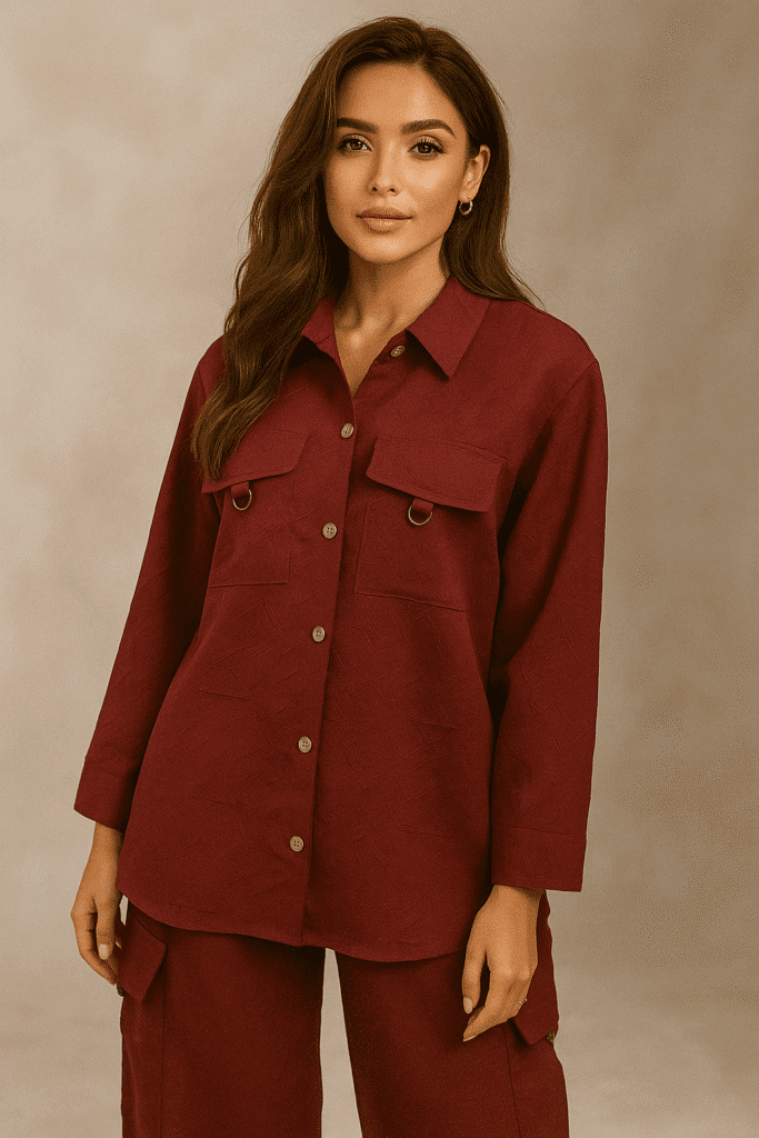 Women’s Chine Bubble Embossed Jersey Co-ord Set | Maroon Two-Piece Suit
