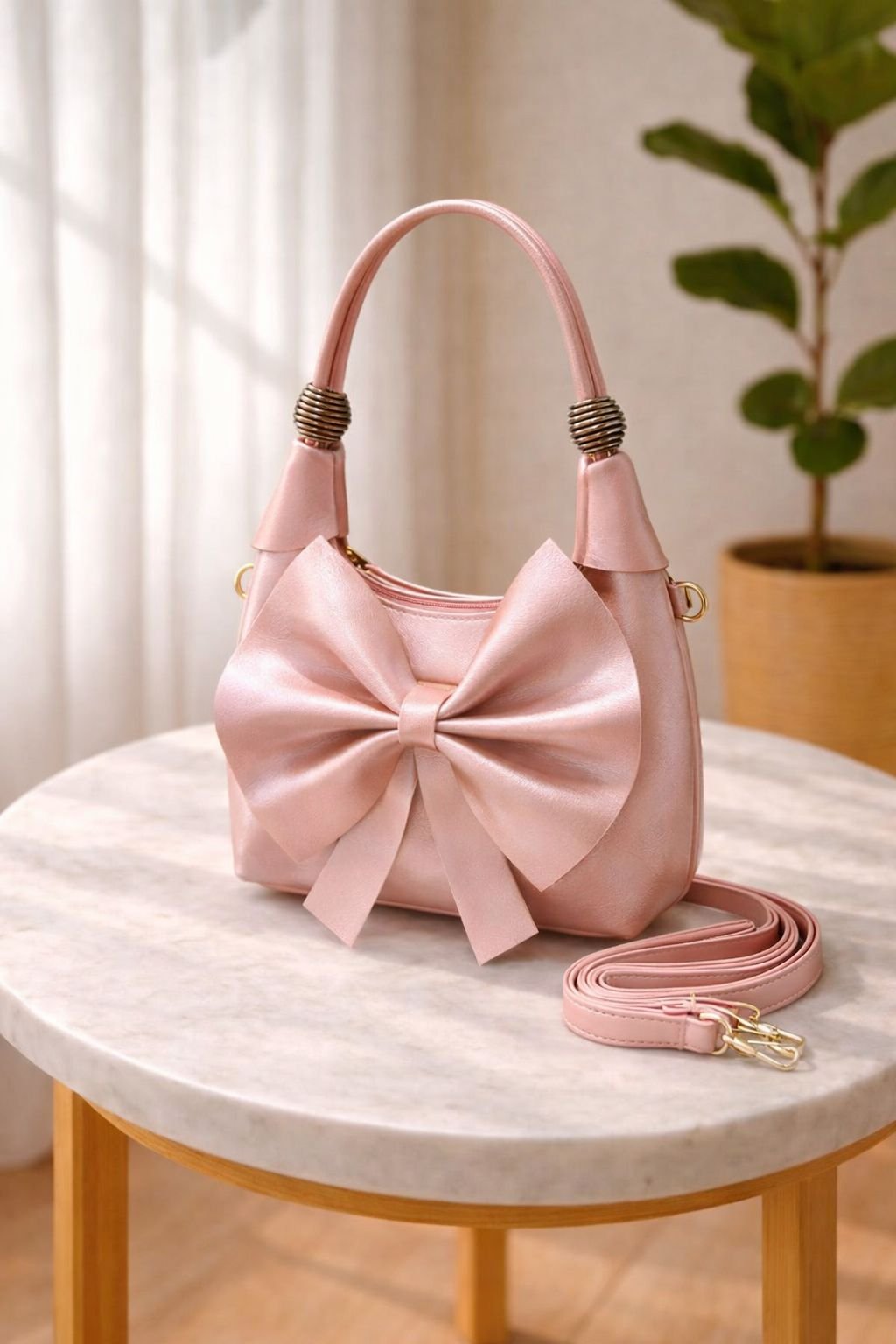The Cute Bow Handbag comes with a versatile strap that allows multiple carrying styles: