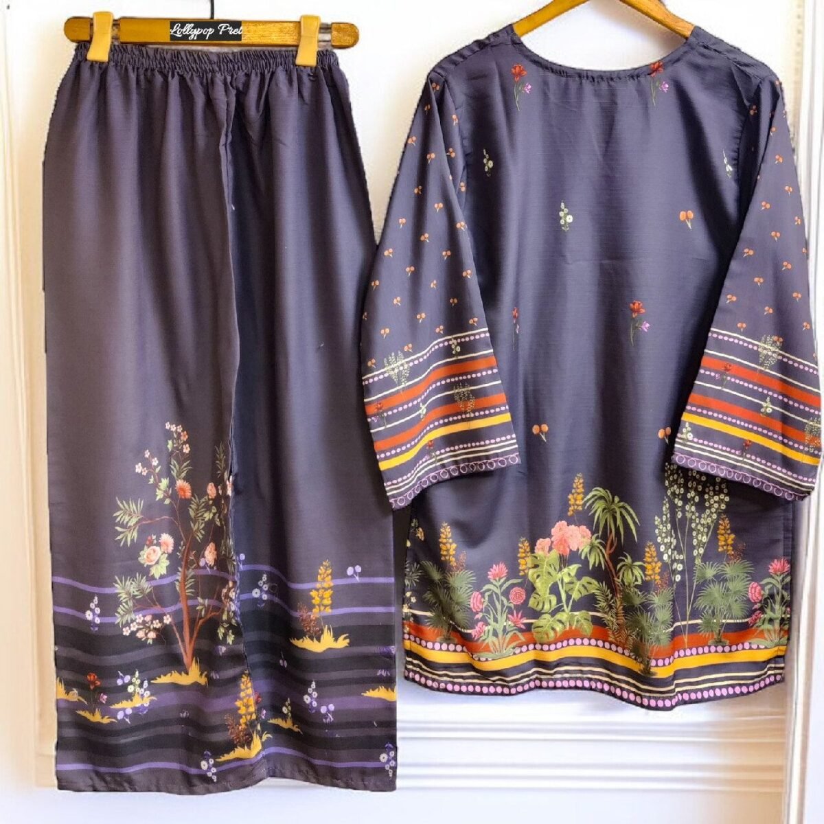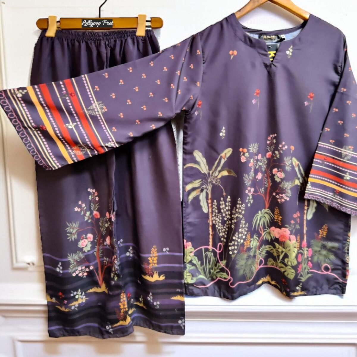 Dark Plum Tropical Print Co-ord Set – 2Pc Crystal Lawn Outfit for Women