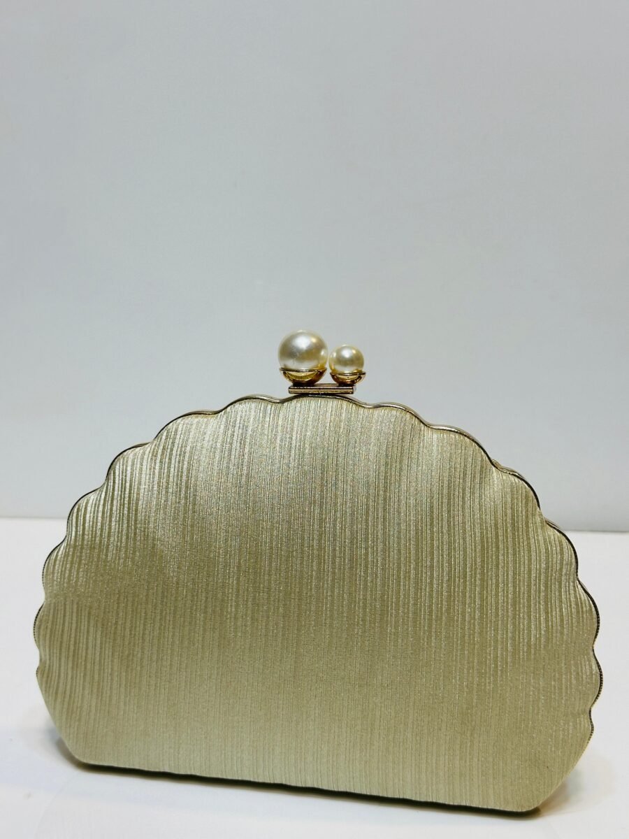 Whether you’re attending a wedding, gala, or formal dinner, this pearl clasp evening purse adds the finishing touch to your outfit. The shell-shaped exterior reflects light beautifully, giving it a soft glow under any lighting. It’s elegant yet practical, designed to hold your must-haves without compromising on style. This clutch complements both classic and modern dresses, making it an ideal choice for brides, bridesmaids, or fashion-forward guests.