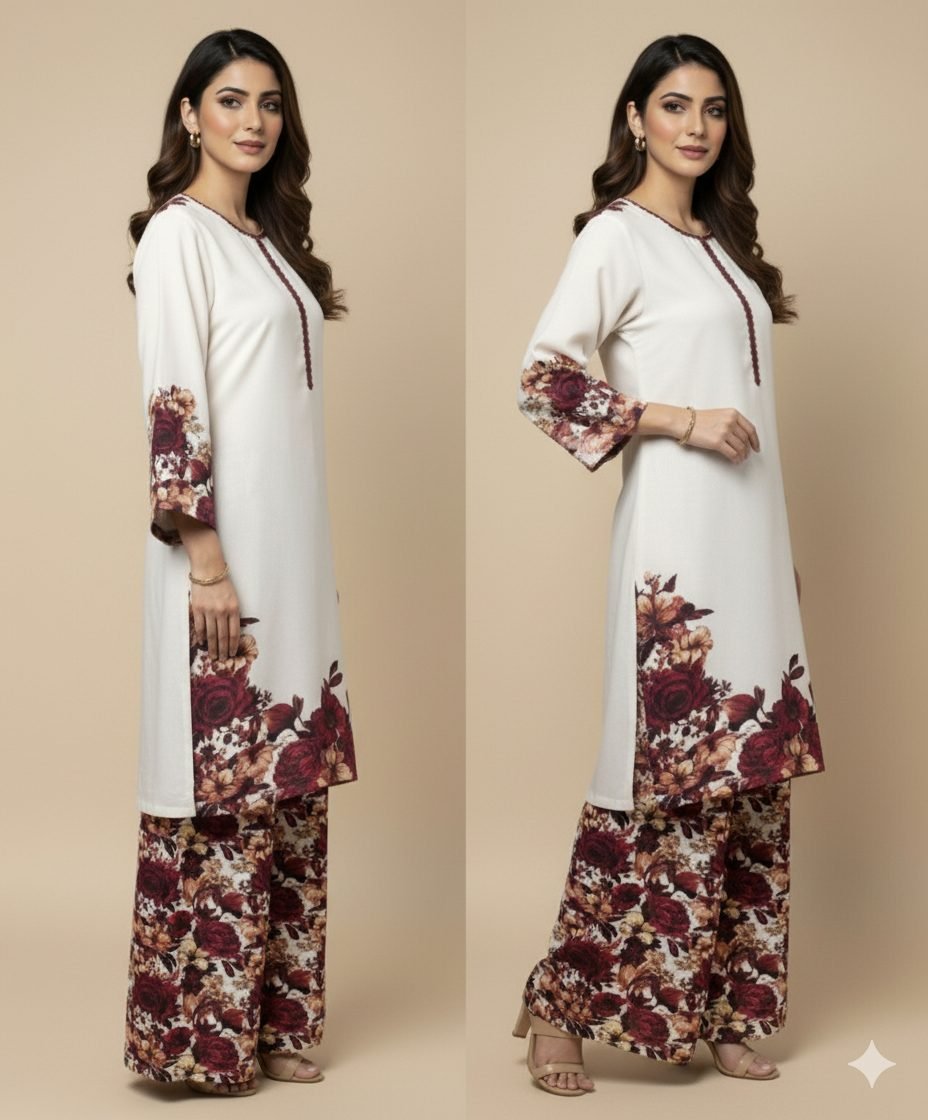 Luxury Floral Print Corduroy 2 PC Co-ord Set brings together warmth, texture, and timeless floral design — a winter-ready outfit crafted for women who want comfort without compromising on style. This Winter Edition is made from premium corduroy with an elegant floral print, tailored to flatter and keep you cozy during the colder months.