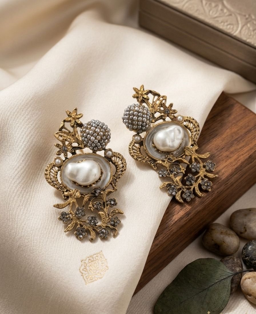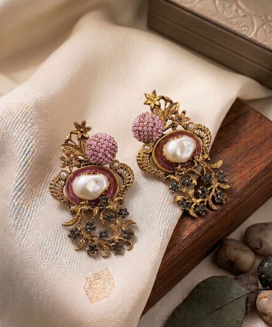 Vintage Floral Gold Plated Earrings – Stunning Pearl Stud Party Wear Jewelry for Women (Best 2026)