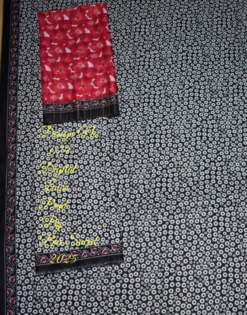 Bin Saeed Unstitched 3-Pc Lawn Suit | Black Digital Printed Design with Red Floral Dupatta