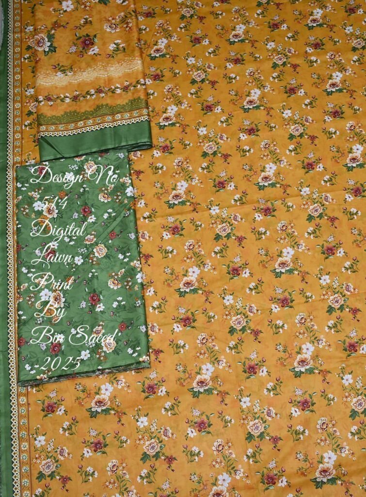 Bin Saeed Premium Digital Printed Lawn Suit | Unstitched Fabric | Elegant Floral Patterns